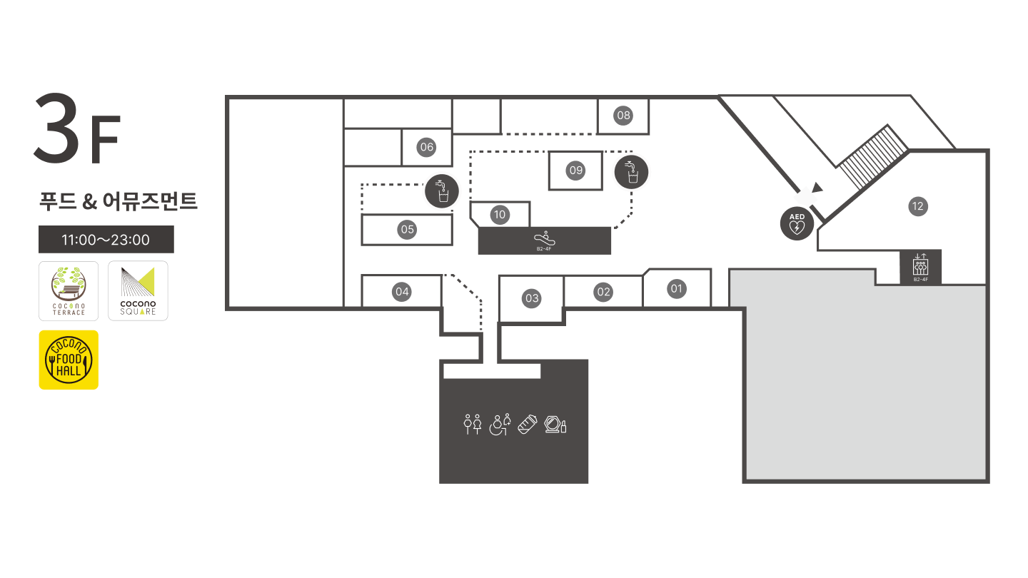 요리는 같은 층의 옥내 광장 “COCONO SQUARE”에서도 드실 수 있습니다.
